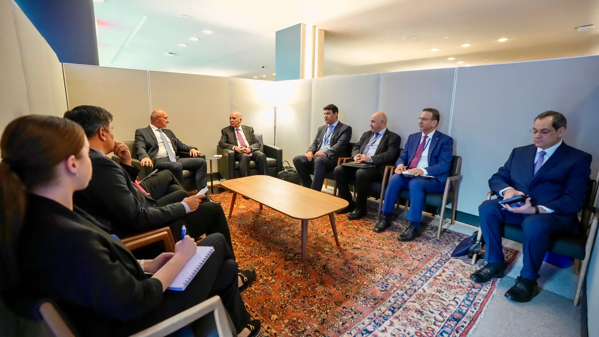 Na marginama Opće skupštine UN-a, ministar Grlić Radman sastao se s iračkim šefom diplomacije Fuadom Huseinom. Glavne teme razgovora bile su stabilnost na Bliskom istoku, potencijalni doprinos Hrvatske obnovi Iraka, ali i ključna energetska suradnja. Poseban naglasak stavljen je na mogućnosti suradnje kroz JANAF i LNG terminal, kao i na obrambenu suradnju.