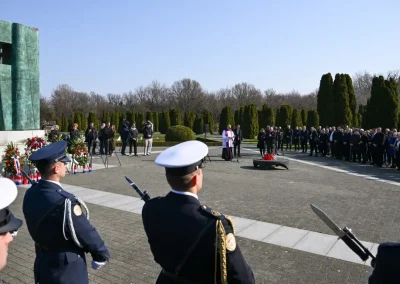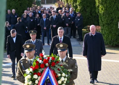Svečanost obilježavanja započela je na Memorijalnom groblju žrtava iz Domovinskog rata u Vukovaru, gdje su uz predsjednika Milanovića počast poginulim braniteljima i civilima odala brojna državna i lokalna izaslanstva polaganjem vijenaca kod središnjeg Spomen obilježja.