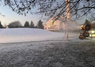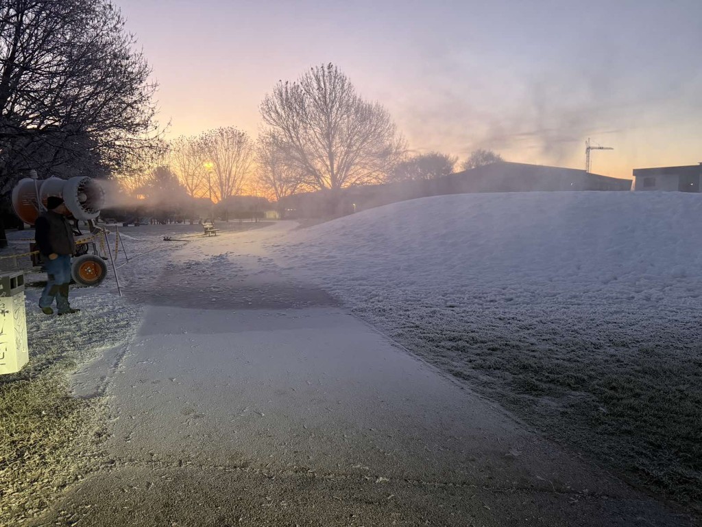 Dok prirodne pahulje izostaju, Grad Čakovec i gradsko poduzeće EKOM preuzeli su stvar u svoje ruke. Tijekom noći s ponedjeljka na utorak, uređaji za proizvodnju umjetnog snijega radili su punom parom, a rezultat je bijeli brežuljak na čakovečkom Jugu spreman za prve sanjkaše.