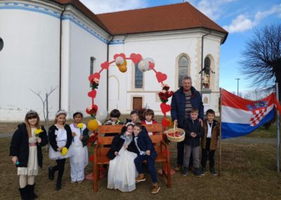 Povodom Valentinova, Dječji vrtić Smiješko pretvorio je svoje prostorije u pozornicu za autentičnu međimursku svadbu, uspješno oživjevši bogate tradicijske običaje sjevera Hrvatske. U sklopu ove hvalevrijedne inicijative, mališani su s velikim entuzijazmom preuzeli uloge mladenaca, kumova i veselih svatova. Odjeveni u minijaturne narodne nošnje, djeca su kroz igru i pjesmu njegovala izvornu međimursku riječ, pokazujući kako se kulturna baština najprirodnije čuva upravo od najranije dobi.