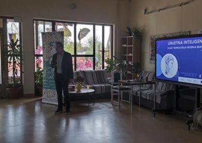 Javno predavanje o umjetnoj inteligenciji održali su stručnjaci Dejan Drabić, mag. inf. i Marin Drabić, mag. inf. rač., koji su okupljenima približili kompleksni svijet umjetne inteligencije (AI). Predavači su proveli publiku od povijesnih početaka AI-ja do njezinih današnjih primjena u svakodnevnom životu.