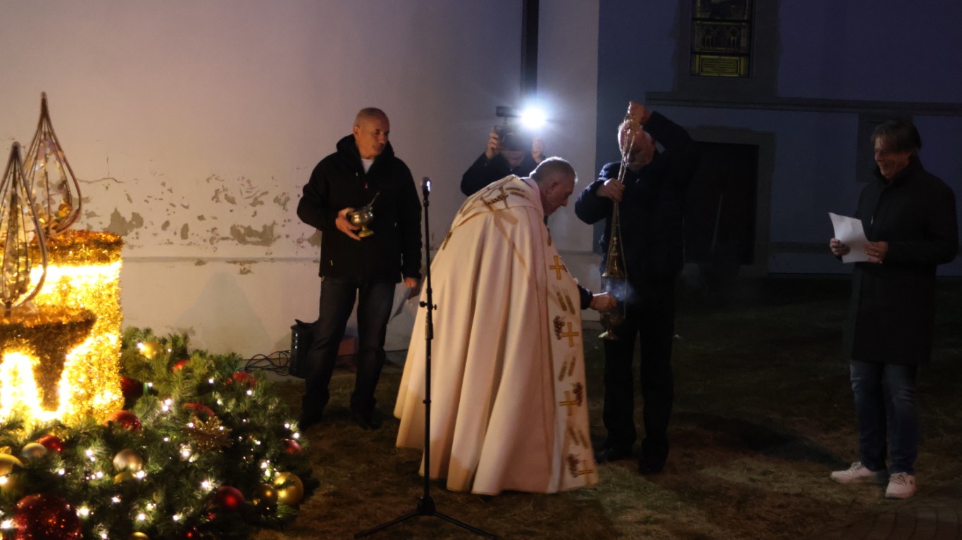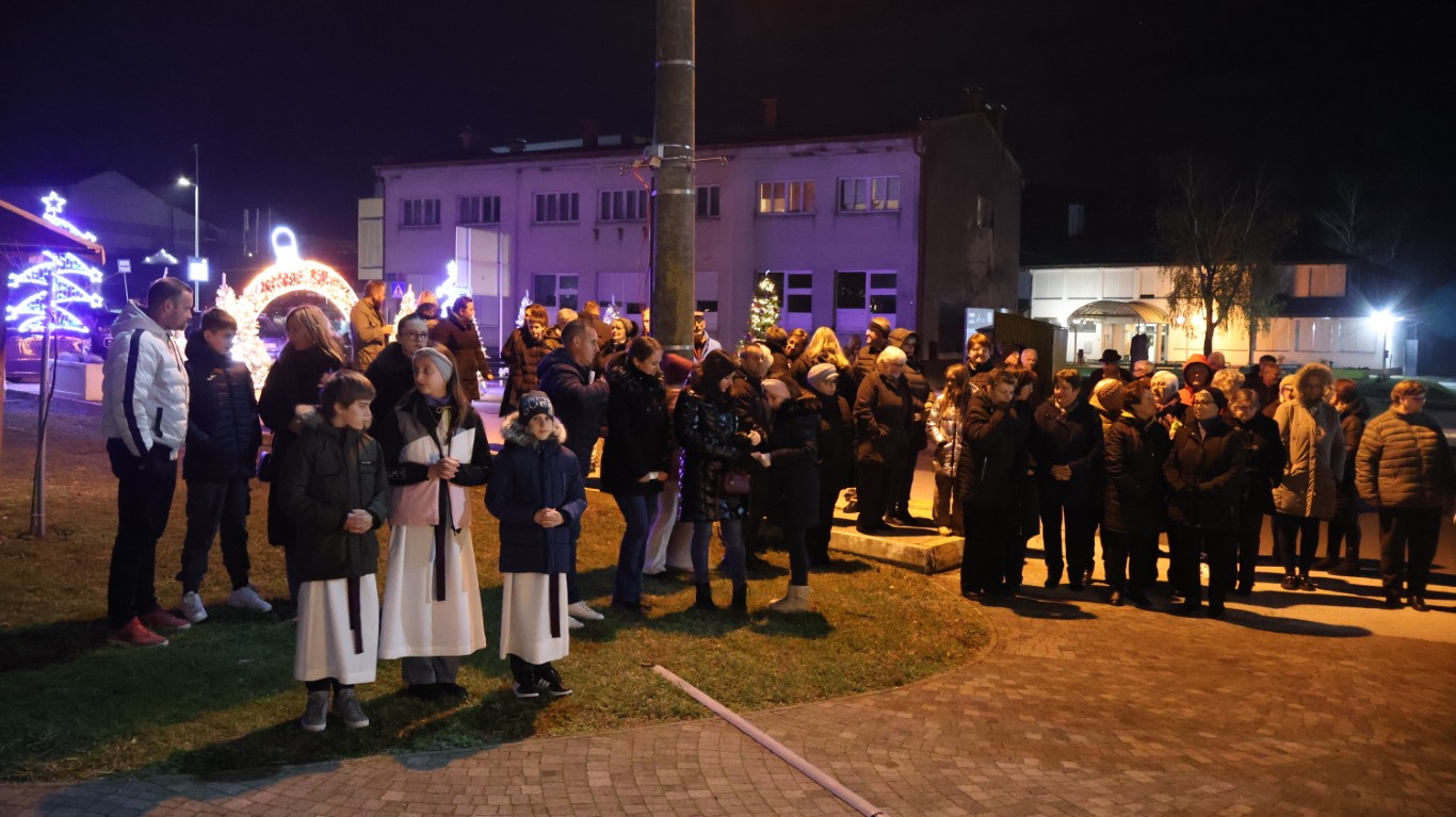 Nakon svete mise, ispred župne crkve se okupilo mnoštvo vjernika i posjetitelja kako bi prisustvovali svečanom paljenju prve adventske svijeće na adventskom vijencu.