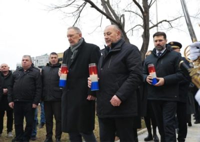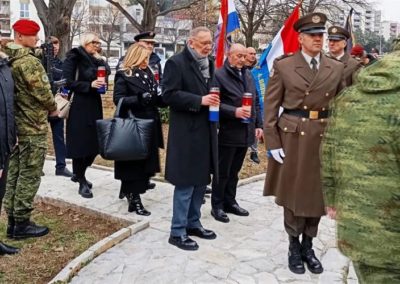 Počast na ključnim lokacijama Program je započeo tradicionalnom budnicom Gradske glazbe Zadar, nakon čega su položeni vijenci i upaljene svijeće na ključnim spomen-obilježjima: