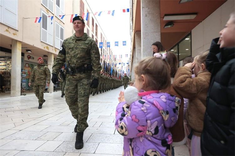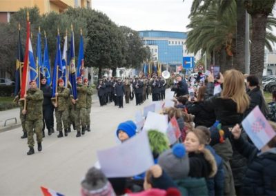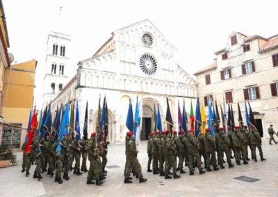 Nakon polaganja vijenaca, ulicama Zadra prošao je svečani mimohod postrojbi OS RH i MUP-a s ratnim zastavama, evocirajući uspomene na dane ponosa i slave, dok je u crkvi sv. Šime služena sveta misa za Domovinu.