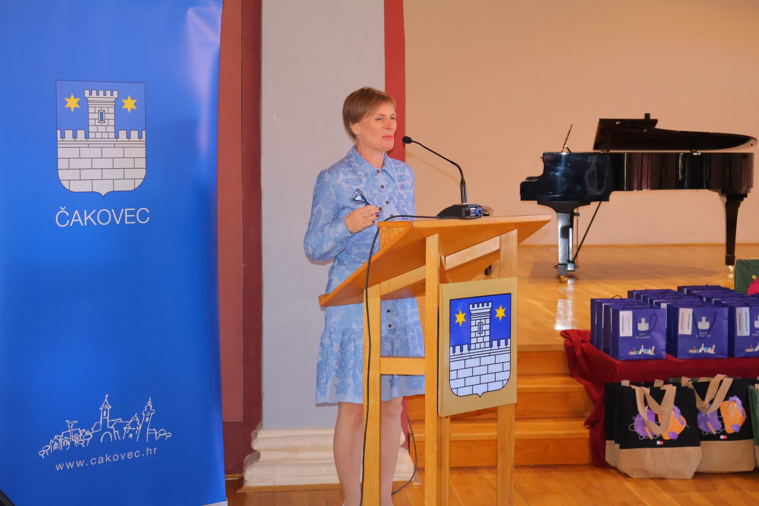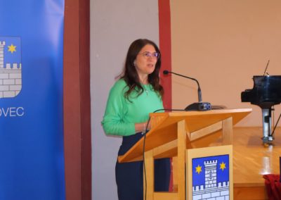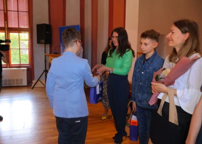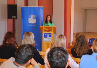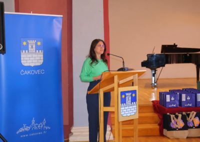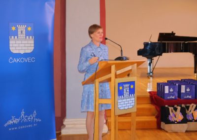 Gradonačelnica Grada Čakovca Ljerka Cividini, obratila se prisutnima s čestitkama i riječima pohvale. „Pokazali ste izuzetnu motiviranost za učenje, čemu je dokaz i osvajanje jednog od prva tri mjesta na državnim i međunarodnim natjecanjima i smotrama. Znanje je jedna od rijetkih stvari u životu koja je samo vaša i koju vam nitko ne može oduzeti.  Znanje je ona stvar na koju se u svakom trenutku možete osloniti i zahvaljujući tome će vam se otvarati mnoga vrata i prilike. Nema beskorisnog znanja, sve što naučite tijekom školovanja, ostaje vam za cijeli životi. Hvala i vašim mentoricama i mentorima, svim učiteljicama i učiteljima, te zaposlenicima škola što su vas poticali, ohrabrivali i bili tu kad vam je bilo teško. U našem obrazovnom sustavu imamo mnogo takvih ljudi, bez čijeg rada i zalaganja naše škole ne bi bile toliko uspješne, a rezultati koje učenici postižu vrhunski.“, kazala je gradonačelnica Cividini i istaknula, “Želim vam, da na krilima ovog uspjeha nastavite s predanim učenjem i radom . Nadam se kako će vam i ove nagrade biti poticaj te poruka kako  se znanje i učenje isplate.“